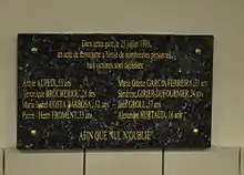 ![]() 纪念1995年7月25日巴黎地铁圣米歇尔站爆炸案的牌匾 | |