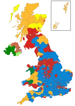 保守党或自由民主党为了组建政府(即在下议院争取到超过半数的席位),他们必须抢夺工党的选票—即使所有保守党的选民转投自由民主党,结果工党仍占有323席的多数党。