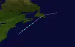 7月13日,一股冷锋离开美国东部,随后在大西洋西部上空基本停止移动[29]。冷锋衰减并消散后留下了两片低气压区[30],其中偏南的一片靠近北卡罗莱纳州的低气压区发展成了热带风暴贝里尔[31],偏北的一片系统则于7月16日在鳕鱼角东南偏南海域转变成温带低气压。低气压向东北进入温暖水域上空,于当天晚些时候从逐渐消散的锋中分离。中心附近有对流发展出来,气旋于7月17日在南塔克特东南方向约390公里洋面转变成热带低气压[29]。低气压加速朝东北前进,于6小时后达到热带风暴标准。风暴中出现显著的带状特征,经过继续强化,气旋于7月17日晚在新斯科舍哈利法克斯以南约395公里海域达到最大持续风速每小时85公里的最高强度。此后不久,风暴离开墨西哥湾暖流并接触到水温大幅降低的水域,其对流迅速减少,风暴也快速减弱,于7月18日退化成一片不含对流的残留低气压。系统残留穿过了纽芬兰岛,之后转向东北偏东,于7月19日消散[29]。风暴在穿越纽芬兰前已大幅弱化,因此构成的影响很小[21]。