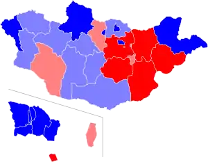 | 东方省 | 16,098 | 53.06% | 11,798 | 38.89% | 1,886 | 6.22% |