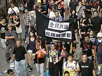 - 10月20日:12萬人上街遊行,抗議政府拒絕發出免費電視牌照予香港電視,亦不滿政府黑箱作業拒絕交代原因,港視員工總會亦估計下午有8萬人在政府總部參加集會。[18]