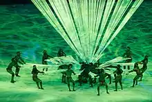 當森林被投射在球場地上時,五個由一位南非木偶創作家設計的大型昆蟲被表演者抬入表演場,象徵生命的開始[11]。然後,72個從亞馬遜州找回來的表演者進入表演場。他們代表巴西的原住民,並拿起在表演場中間的幾百條橡筋狀長條跳舞。