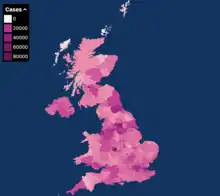 ![]() 英国各地区2021年1月20日的確診數[1] | |