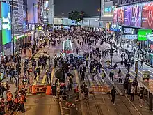 晚上8時40分,示威者佔據銅鑼灣崇光百貨對出的軒尼詩道,以雪糕筒、膠欄和回收桶設置路障。部分示威者向灣仔方向前進,並衝出告士打道設置路障,表明要「快閃紅隧」,堵塞紅隧往港島的出入口約3至4分鐘。同一時間,另一批示威者到達灣仔金紫荊廣場,除投擲雜物外,亦在雕塑底以黑色噴漆噴上「天滅中共」、「皇天擊殺」、「光復香港」等字眼。[24][25][26]