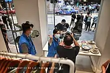 下午約3時45分,有市民在名店坊門口呼叫口號「黑警死全家」,令警方即時舉起「黃旗」,警告名店坊的市民離開;其後大批警員衝入名店坊拉起橙帶,並要求商場地面位置拍攝的記者離開商場範圍,場面一度混亂。警員到1分鐘後離開。[12] 不過到數分鐘後,大批警員在4時45分再次衝入名店坊商場,並走入Y-3時裝店進行追截一名年約10歲的男童,警方的行動令他受驚,面容緊張,雙手抱頭蹲下,需由警員拍背安慰,男童最後獲警員放行。市民斥警方行為荒謬:「細路仔嚟㗎咋!」[13]同一時間,一名身穿黑衣的少年在商場後巷被大批警員搜查約20分鐘,期間警員將搜查過程在網上直播,並搜出《蘋果日報》、水樽及帽子。雖然只有一人,但警員以限聚令票控他。[13]