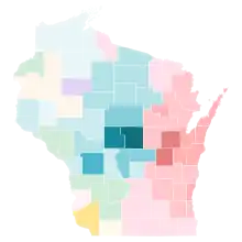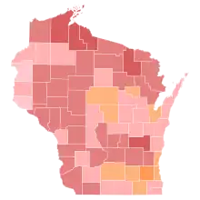 ![]() 縣市結果 埃弗斯: 50–60% 70–80% Michels: 40–50% 50–60% 60–70% 70–80% | ||||||||||||||||||||