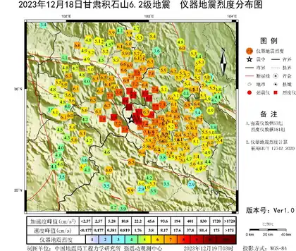 | 18日23时59分[13] | 积石山县 | 35.70°N 102.79°E | 6.2 | 10 |