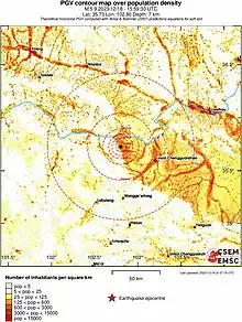 | 最大 | Ⅸ度(9度)(CSIS,CEA)[1] Ⅷ度(MMI,USGS) |