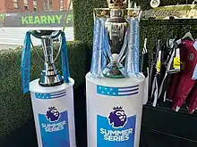 英超夏季系列賽獎盃(左)與英超獎盃(右)於卡尼,紐澤西州展出