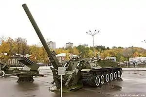 火砲採外置式,是普姆機械製造工廠(Perm Machine Construction Work)設計的M-240 240公釐後膛裝填式迫擊砲,採彈艙方式給彈,由後膛裝填,彈艙為鼓形,每個可裝20枚各式砲彈,以電動或機械式擊發。主要使用兩種彈藥:一種是高爆破片砲彈,彈重130公斤,最大射程9,650公尺;另一種是火箭助推高爆破片砲彈,重量228公斤,最大射程可達20,000公尺。另外也可發射戰術核子砲彈、化學砲彈和其他特殊砲彈。