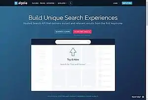 Algolia使用外部托管的搜索引擎为客户的网站提供网络搜索服务。[9][10]产品只需索引客户的网站里的内容,因此搜索任务要简单得多。