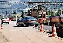 BLS在勒奇山隧道两端的坎德斯泰格及格蓬施泰因之间提供一项穿越隧道的汽车装运列车(不同于人车同行)服务,全程耗时约20分钟,乘客可以留在自己驾驶的汽车内,由两侧开放的汽车运输专用平车运送至隧道的另一端。在节假日期间,BLS也会在格蓬施泰因至辛普朗隧道南端的伊塞勒(意大利)间提供这项服务[9]。