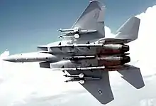 | 炸彈 | 六個翼下、四個機身外側、一個機身中線掛點,總外掛可達16,000磅(7,300公斤) Mk 80系列低阻力自由落體航空炸彈 “JDAM”联合直接攻击弹药 B-61戰術核子彈 F-15E可掛載各種美國空軍空用炸彈,包括自由落體核彈,以及GBU-28 4,500磅(2,000公斤)碉堡穿透炸彈,LASMARA[日本F-15專屬],JASSM[日本F-15專屬] |