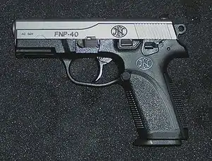 FN FNP是一系列由比利时槍械製造商埃斯塔勒國營工廠(英語:,簡稱:FN)旗下、位於南卡羅來納州哥倫比亞的美国分公司(FNH USA)所設計和生產[6]的半自動手槍。特別是單/雙動(SA/DA)、純單動(SAO)、純雙動(DAO)操作的扳機、聚合物製造的底把,套筒分別有不鏽鋼和聚合物兩種可以選擇。這手槍系列於2006年的年初首度亮相,當時主要分成三種口徑,分別是發射9毫米鲁格弹、.40 S&W和.45 ACP。;到了2008年2月,再加入一種新的口徑,那就是.357 SIG的衍生型。[7][8]