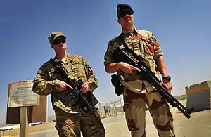 ![]() 攜帶FN TPS泵動式霰彈槍的法國空軍燧發槍團突擊隊士兵(右) | |