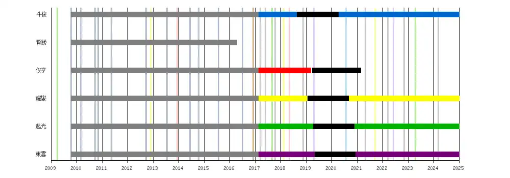 ![]() 由左至右:俊亨(已退團)、東雲、耀燮、起光、斗俊 | |||||