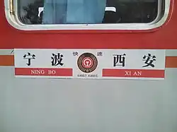 | 运行区间 | 西安站 ↔ 寧波站 |