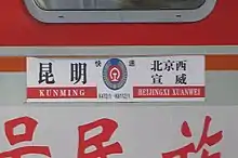 | 运行区间 | 北京西站 ↔ 玉溪站 |