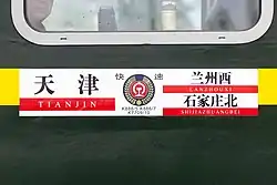 | K885 | 1890 | 第三日 | 04:52 | 05:10 | 蘭州 | 08:38 | 09:02 | 当日 | 10 | K886 |