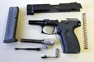 這款手槍的主要零件都是由金屬製成(不鏽鋼製槍管,以及碳鋼製底把(套筒座)和套筒),而武器的握把護板則是由聚合物所製造。