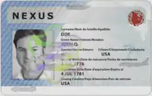 NEXUS是美国、加拿大联合运作的一种快速入境通关计划,可以让预先通过审查的低风险旅客在入境美国或加拿大时,在机场、港口或陆路口岸享受快速通道。[1]符合条件的NEXUS计划参与者在美加机场还能享受快速安检服务。[2][3]其证件俗称芳邻卡,[4]符合真实身份(REAL ID)要求,在两国机场均被接受作为合法登机证件。NEXUS是美国国土安全部受信任旅客计划的一部分。[5]