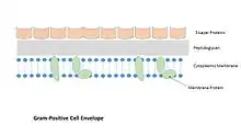 革蘭氏陽性菌的細菌包被,最上方爲S層
