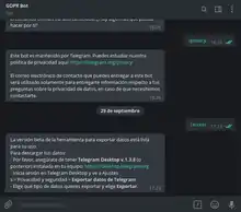 在2015年6月,Telegram開放了機器人API[64],更在2017年5月支援了付款功能[65]。機器人是Telegram上以程式運作的帳號,可以回覆人類的指令、訊息,視開發者設定而異。