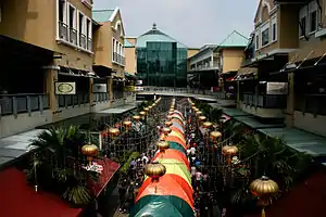 整個商場分為兩大部分,分別是在戶外的The Street和在室內的The Walk。The Street是由62間餐館、酒吧、快餐店和一些服飾店所組成的。主要的大街的設計是模仿美國小鎮的大街,在其兩側分別還有亞洲式和歐美式的庭院。由于有許多的餐館和酒吧,所以每當夜晚和周末時,許多年輕人都會聚集于此。每當周日時,在這裡還會有跳蚤市場。