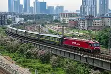 配属北京机务段的和谐3D型电力机车第0530号牵引25T编组的Z336次列车驶出柳州站